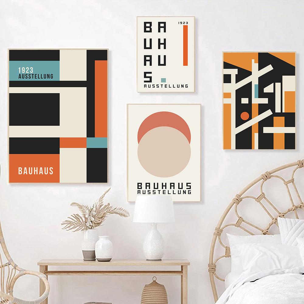 Абстрактные постеры для выставки Баухаус, современные геометрические японские скандинавские настенные художественные картины на холсте, печатные изображения для декора гостиной