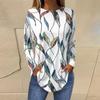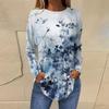 Женская свободная футболка с длинным рукавом с круглым вырезом и принтом, верхний пуловер