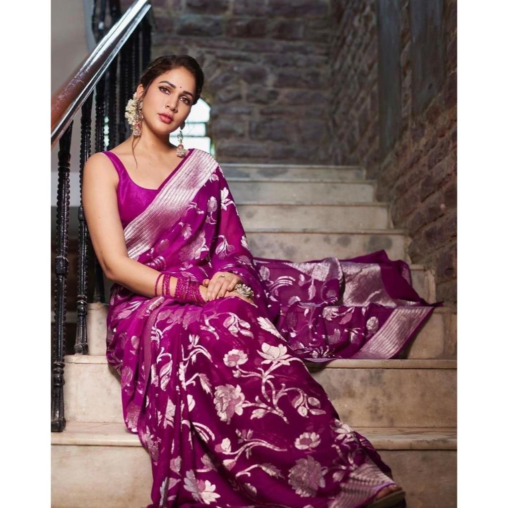 Сари Banarasi из мягкого шелка. Блузка (Необходимо сшить по размеру и посадке) — купить товар онлайн с бесплатной доставкой по всему миру!