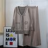 Женский осенне-зимний комплект из двух предметов, трикотажные брюки с принтом, женская уличная одежда, кардиган с длинными рукавами и v-образным вырезом + широкие брюки