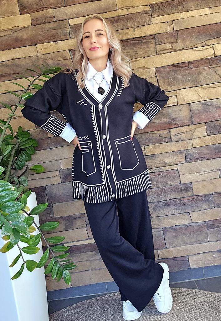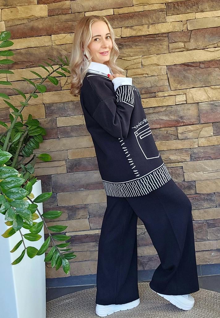 Стильный трикотажный костюм от Dimanaf 🖤🤍 Визуальная иллюзия 🙌 Единый размер Пять расцветок Все детали смотрите на видео 📽 Вроде бы простой костюм, но как же он стильно смотрится благодаря визуальной иллюзии карманов и отделки кардигана 👌 На мне единый размер сел свободно в стиле оверсайз. Кардиган свободный прямого кроя с v-образным глубоким декольте, спущеный рукав, на мой рост с хорошими запасом. Застегивается на четыре красивые пластиковые пуговицы. Трикотаж кардигана соткан из двойной нити, у меня чёрной и белой, хорошей плотности. По поводу чистого хлопка как заявляет продавец, сомневаюсь, этикетка отсутствует. По ощущениям это качественный акрил, эластичный и приятный на теле. Штаны прямого кроя с широкой штаниной и высокой посадкой на широкой удобной резинке. На мой рост в пол, но на высокой платформе прям отлично 👌 Думаю для полной дины подойдут на рост максимум 165 см, выше буду как укороченый вариант. Штаны по плотности немного тоньше чем кардиган. В целом костюм идеально подойдёт на осень/весну и конечно же зиму. 💃 Мои параметры 90-65-90см, рост 156см. 📐 Замеры костюма: Кардиган: Грудь 116 см ( материал конечно очень эластичный, но учтите что при растяжении пуговицы будут не красиво расходиться), талия 110 см, низ 110 см, ширина плеч 61 см, спущеный рукав 52 см, общая длина 70 см Штаны: Талия 64 см до 104 см ( резинка), бёдра 96 см до 150 см, расстояние до начало промежности 36 см, объем штанины от начала промежности 60 см до 100 см, общая длина 98 см. Качество отличное. Единственный момент петельки могли бы быть чуть лучше обработаны, но визуально это абсолютно не портит картину. Мне очень понравился костюм не смотря на то что он на мне сидит очень свободно...а может именно благодаря этому 😁 Стильная вещь, которую можно отлично комбинировать с другими вещами 🤍🖤 ⭐️⭐️⭐️⭐️⭐️ Ваша Инга 😘