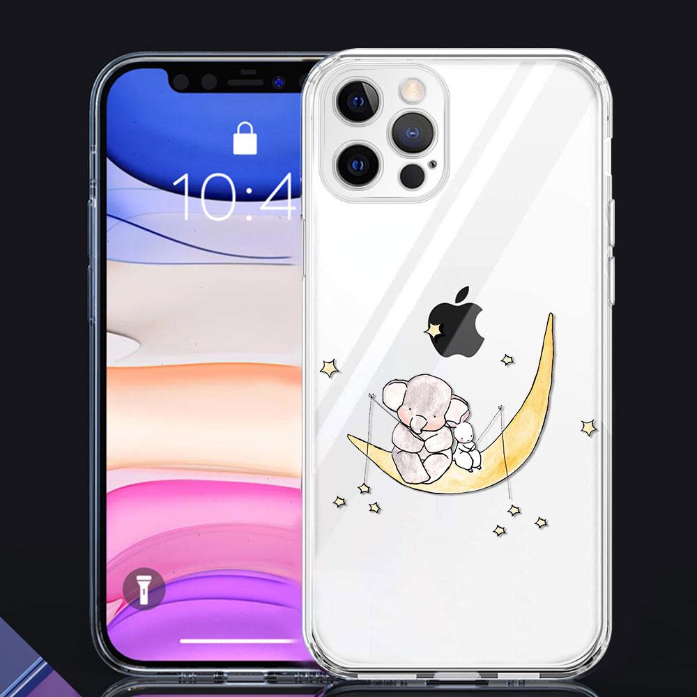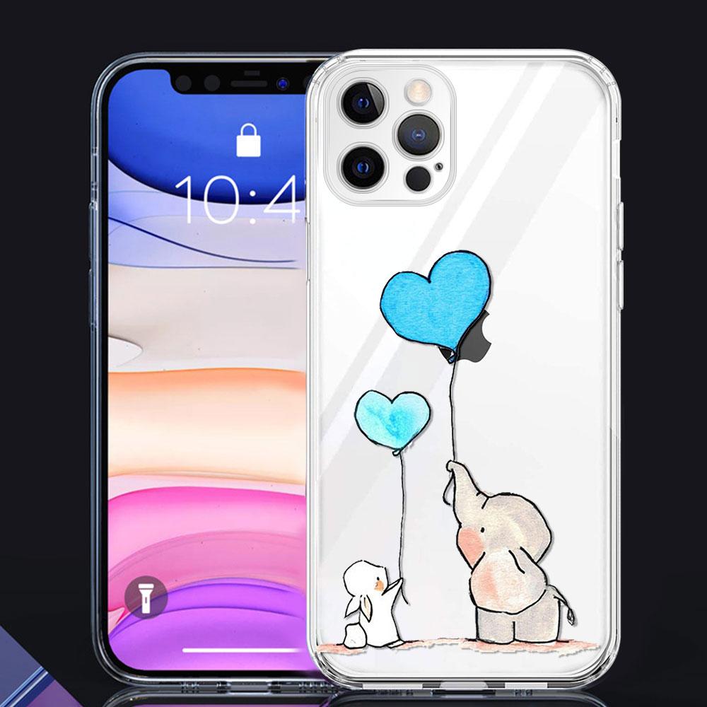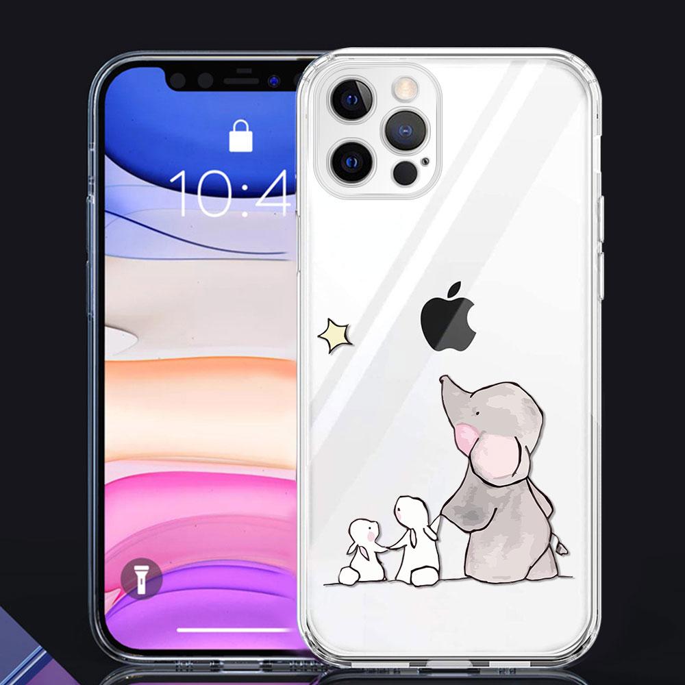 Прозрачный чехол для Apple iPhone 13 Mini 12 11 Pro Max XR SE 2020 7 8 Plus X XS 6 6S, мягкий чехол для телефона с мультяшным слоном и кроликом