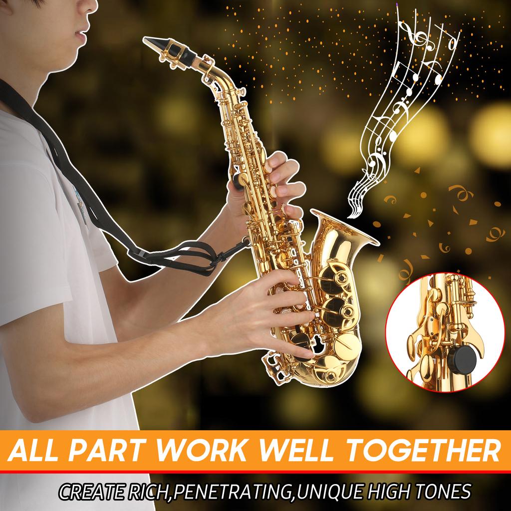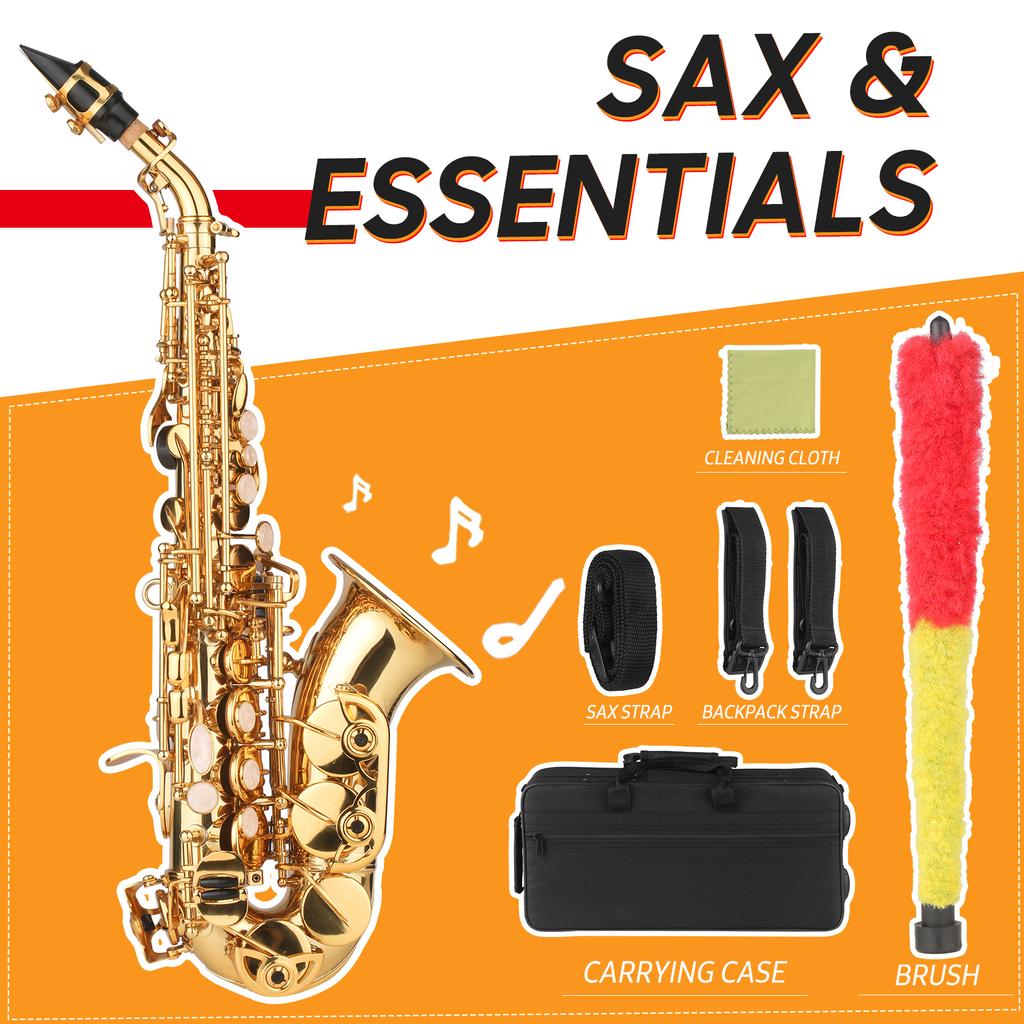 Хорошая игра: изогнутый Bb сопрано саксофон, разработанный с перламутровыми клавишами-инкрустациями, легкий, удобный для игры.