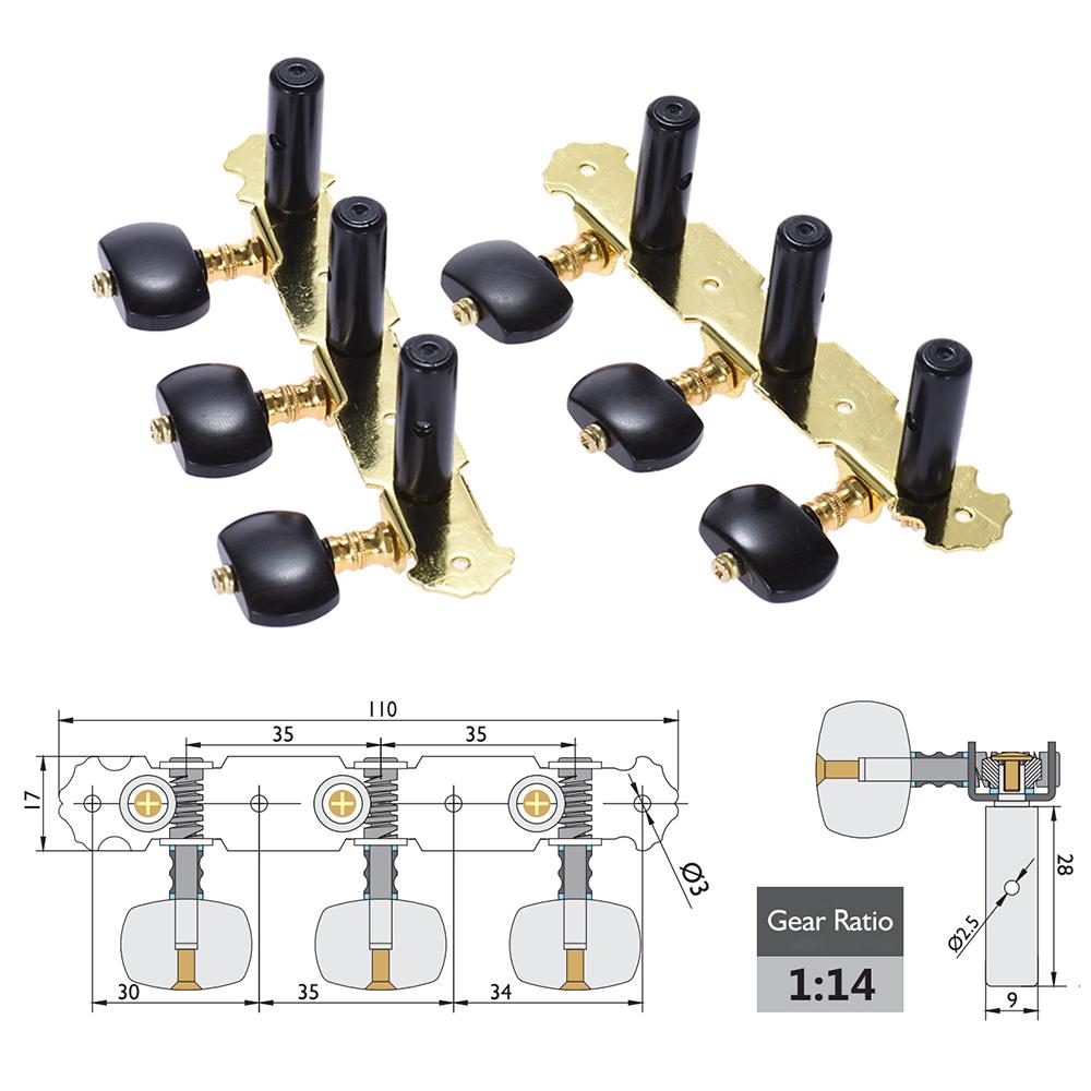 2 шт. (L&R) Колки для настройки классической гитары, колки для акустической гитары с золотым и черным покрытием 1 : 14 настроечных ключей, ручек, тюнеров для струн (АОС-020HV3P)