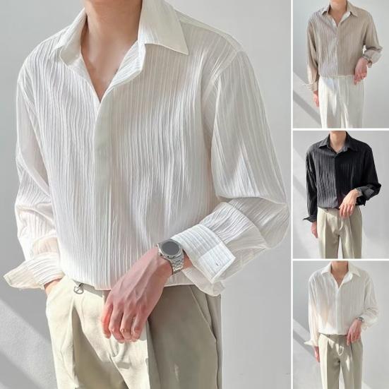 дизайн: Этот мужской топ имеет классический классический крой, однотонные цвета, лацканы и длинные рукава создают простой, но изысканный образ.. Универсальный дизайн делает его подходящим для различных случаев: от повседневных прогулок до официальных мероприятий.