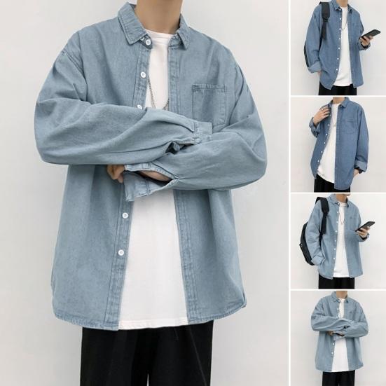 Стиль сочетается с универсальностью в этой мужской джинсовой рубашке, которая станет незаменимым дополнением вашего гардероба для создания повседневного, но модного образа.. Эта рубашка, изготовленная из высококачественной полиэфирной ткани, обеспечивает комфорт и приятное ощущение для кожи и идеально подходит для различных случаев.