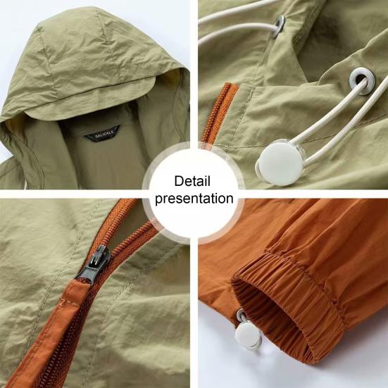 Это анти-УФ-пальто с планкой на молнии и регулируемым капюшоном на шнурке обеспечивает максимальную защиту и защиту от вредных солнечных лучей, сохраняя при этом прохладу и стиль.