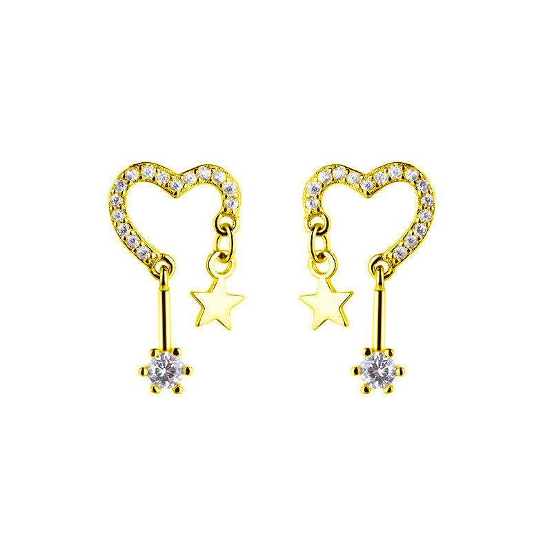 Серьги-гвоздики Хипстерский дизайн личности Чувство темперамента Серьги-гвоздики с бахромой Золотой блеск Бриллиант Любовь Серьги-гвоздики