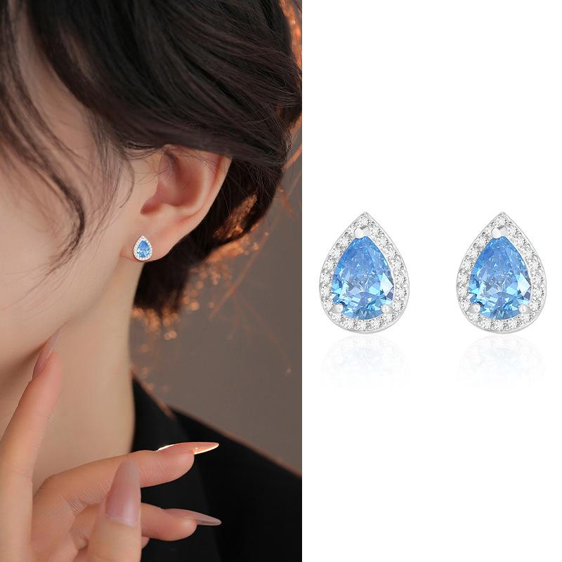 S925 Посеребренные серьги Серьги «Слезы ангела» Простые новые модные серьги с синими бриллиантами и высокой атмосферой