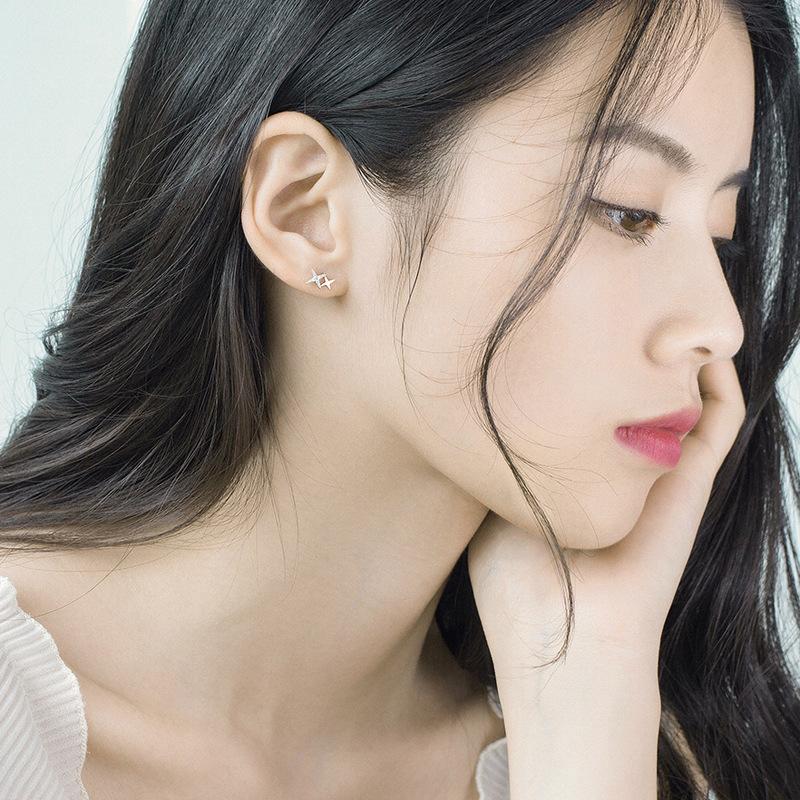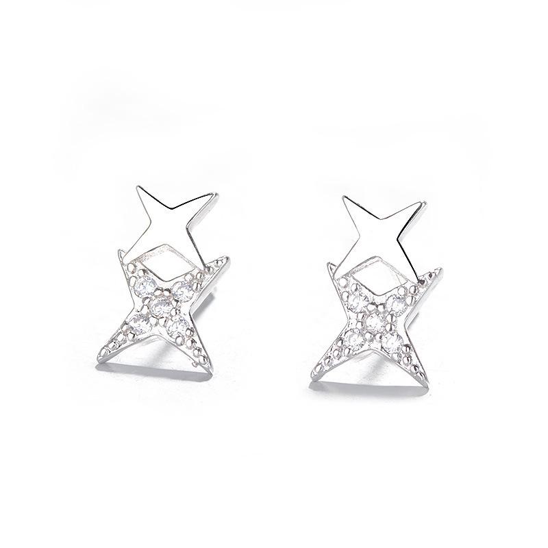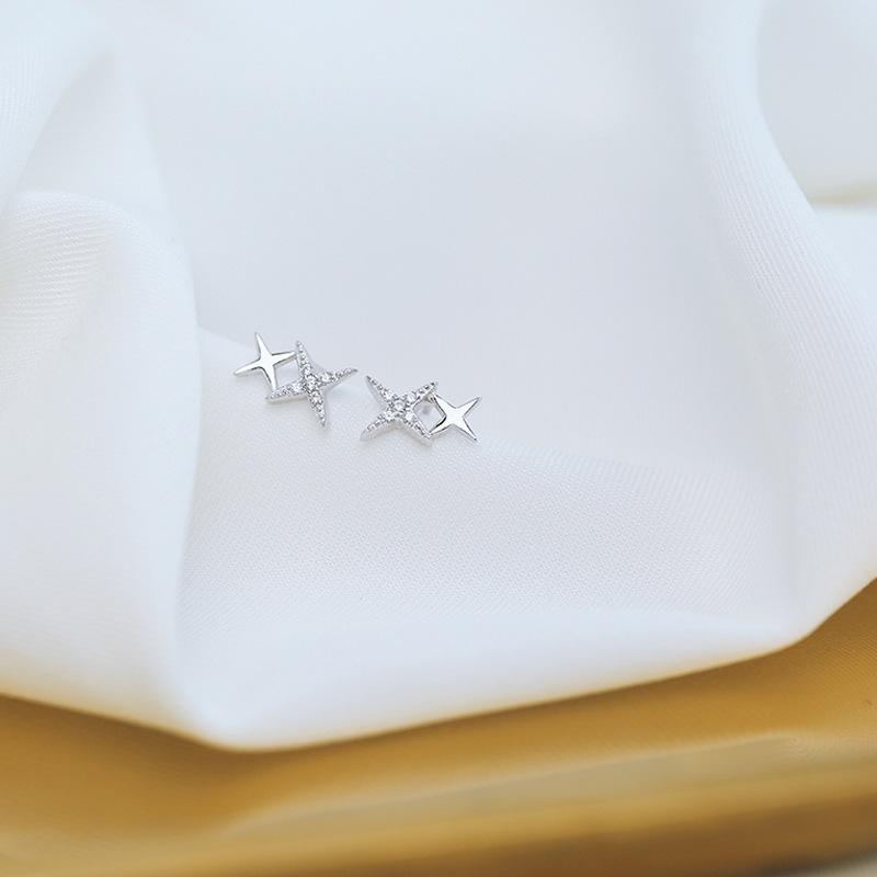 Серьги-гвоздики с серебряным покрытием S925, холодный ветер, звезда, сладкий темперамент, инкрустированные бриллиантами, в форме четырехконечной звезды, маленькие, свежие, с японскими корейскими женщинами