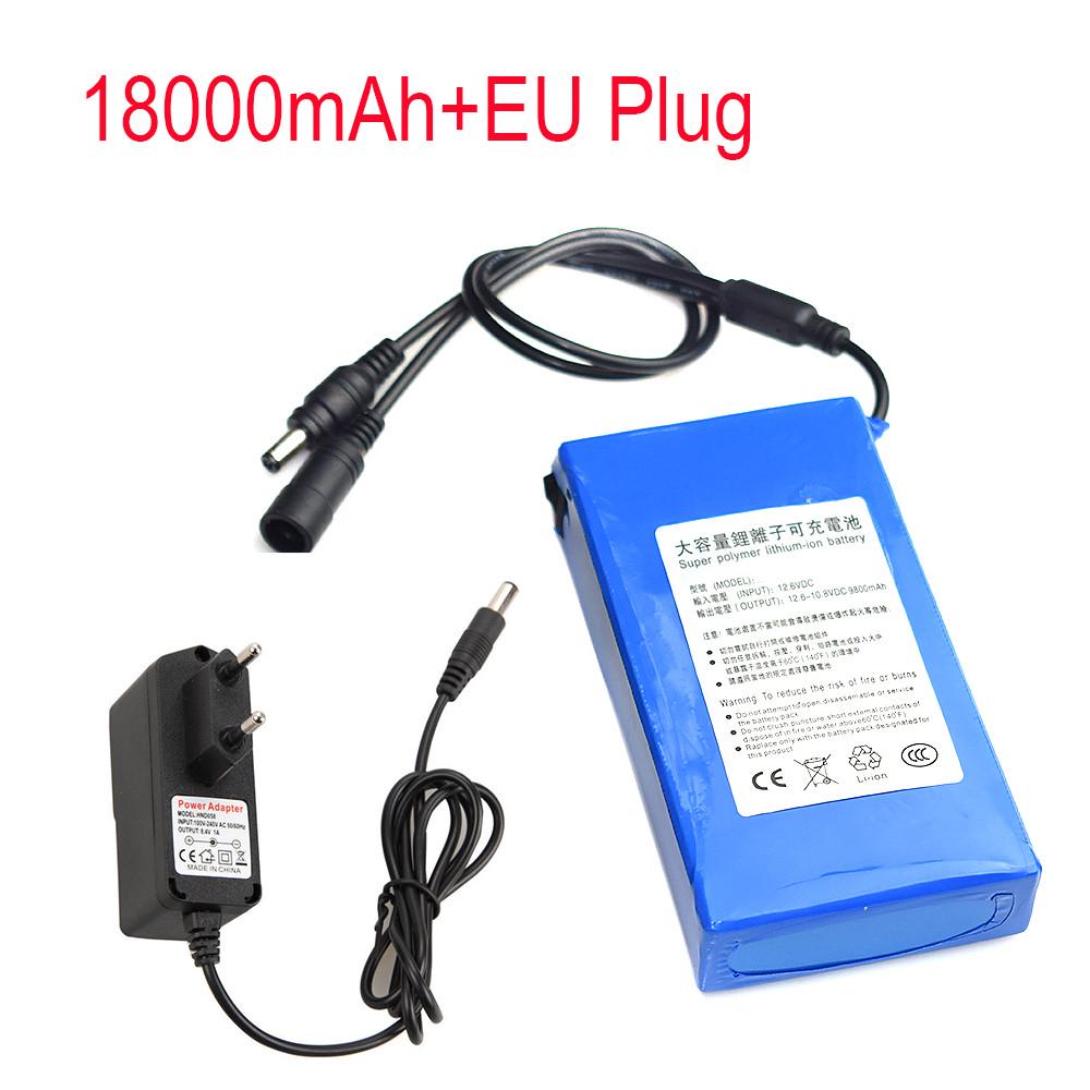 Суперперезаряжаемый литий-ионный аккумулятор 12 В, 6800–18 000 мАч + вилка европейского стандарта