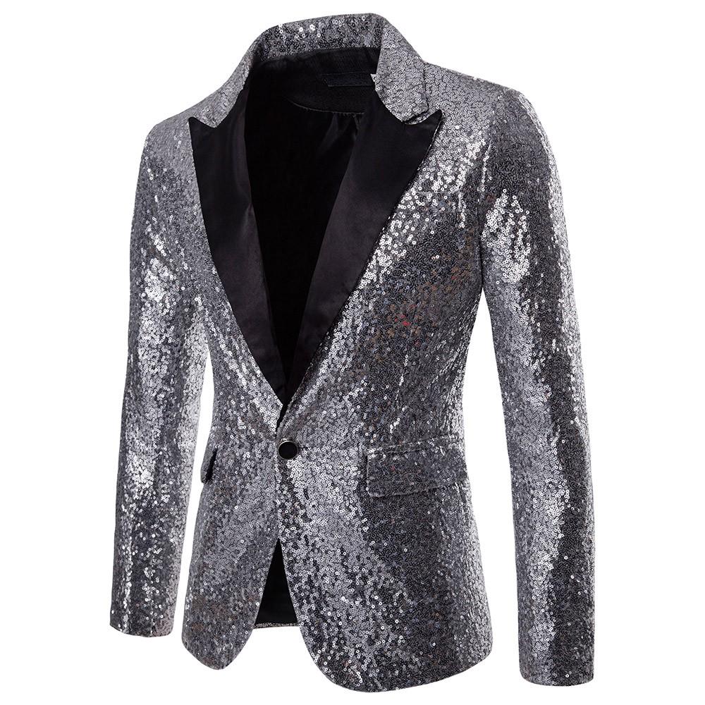Очаровательный мужской повседневный костюм на одной пуговице, куртка, вечерние топ с блестками