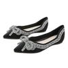 Модные женские туфли со стразами, лето 2024, женская обувь большого размера с острым носком на плоской подошве и бантом, Zapatos De Mujer