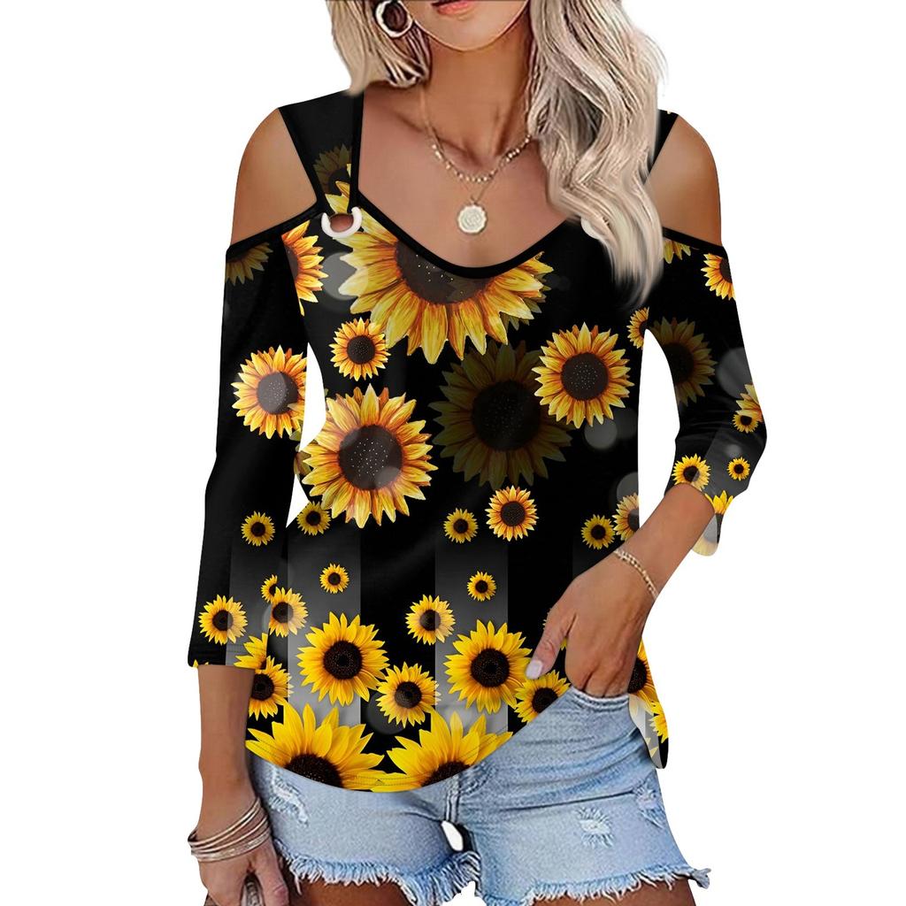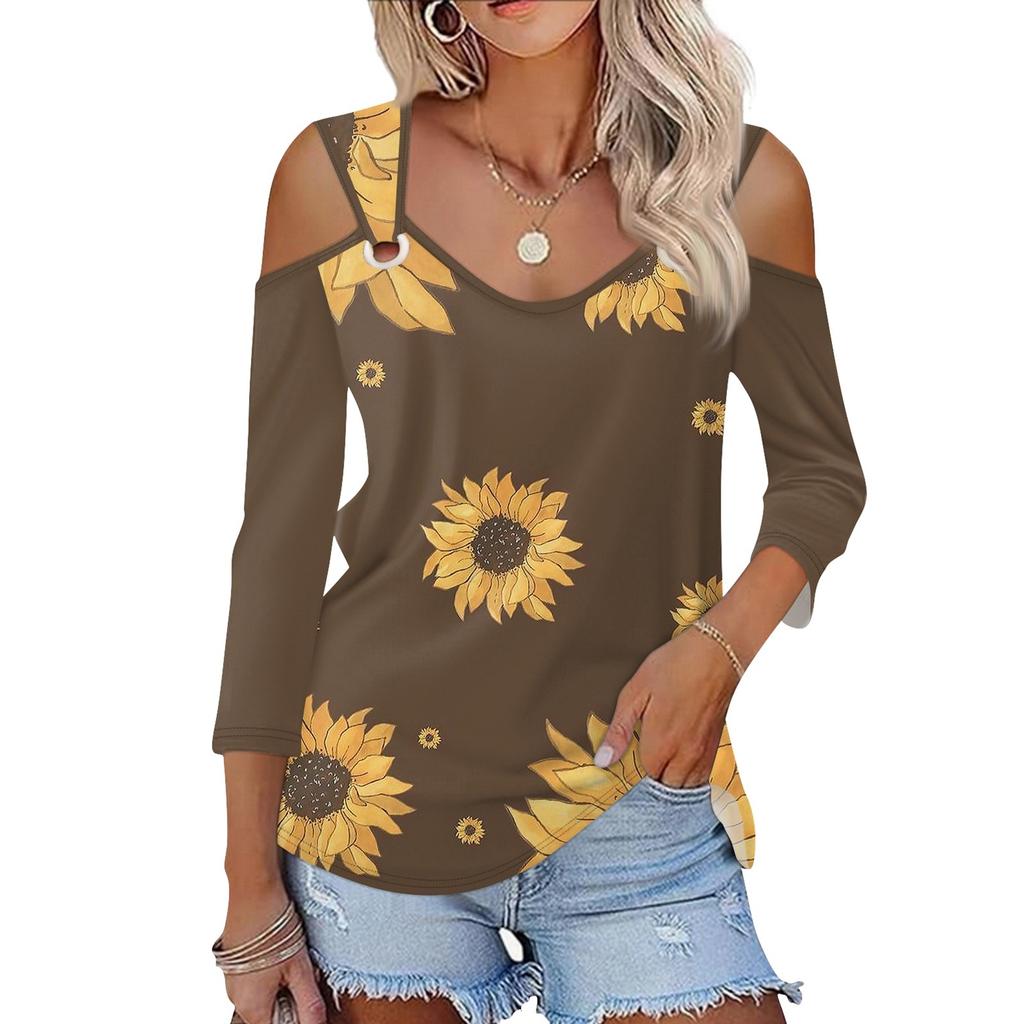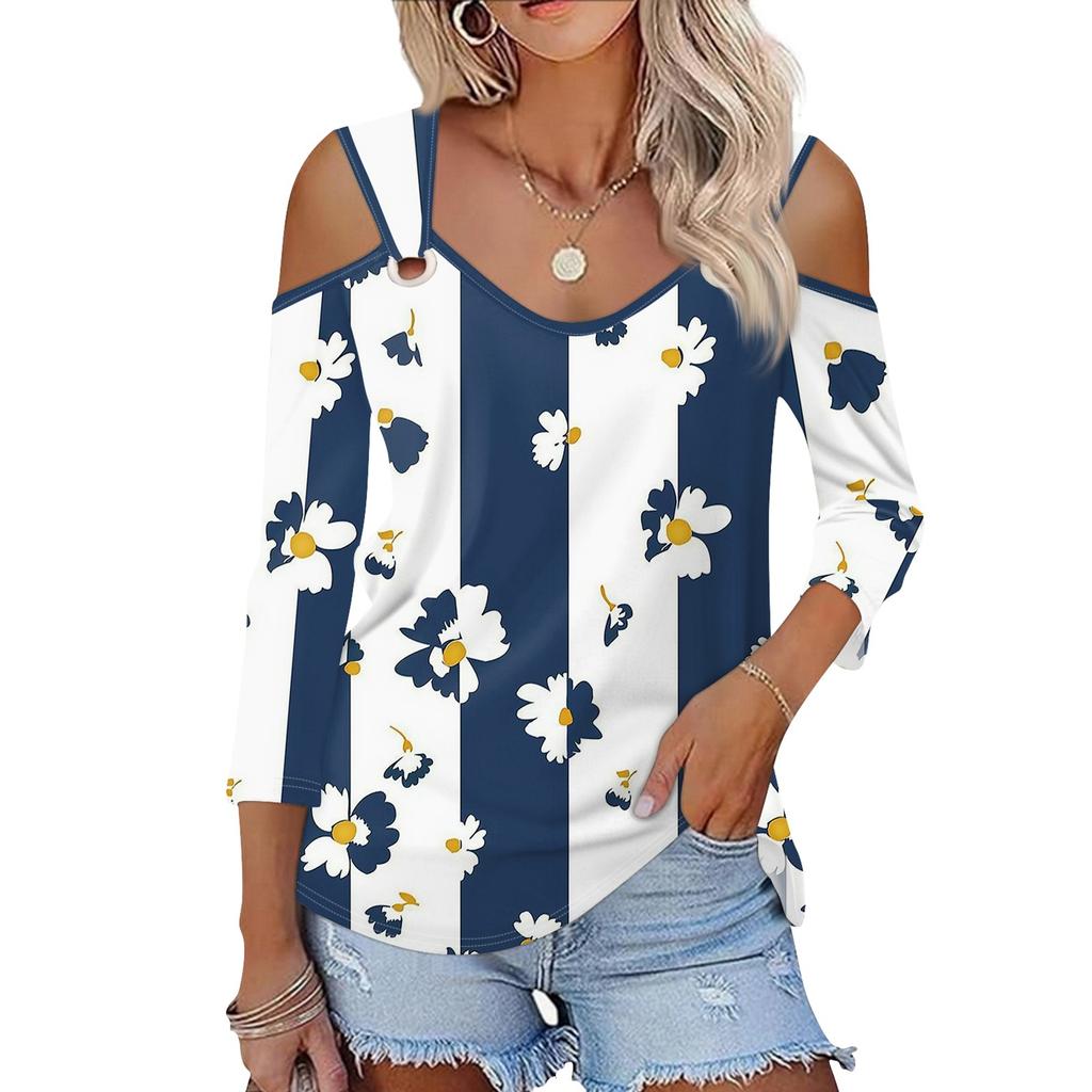 Женская повседневная рубашка-блузка с v-образным вырезом и принтом, сексуальный топ с открытыми плечами и рукавами 3/4