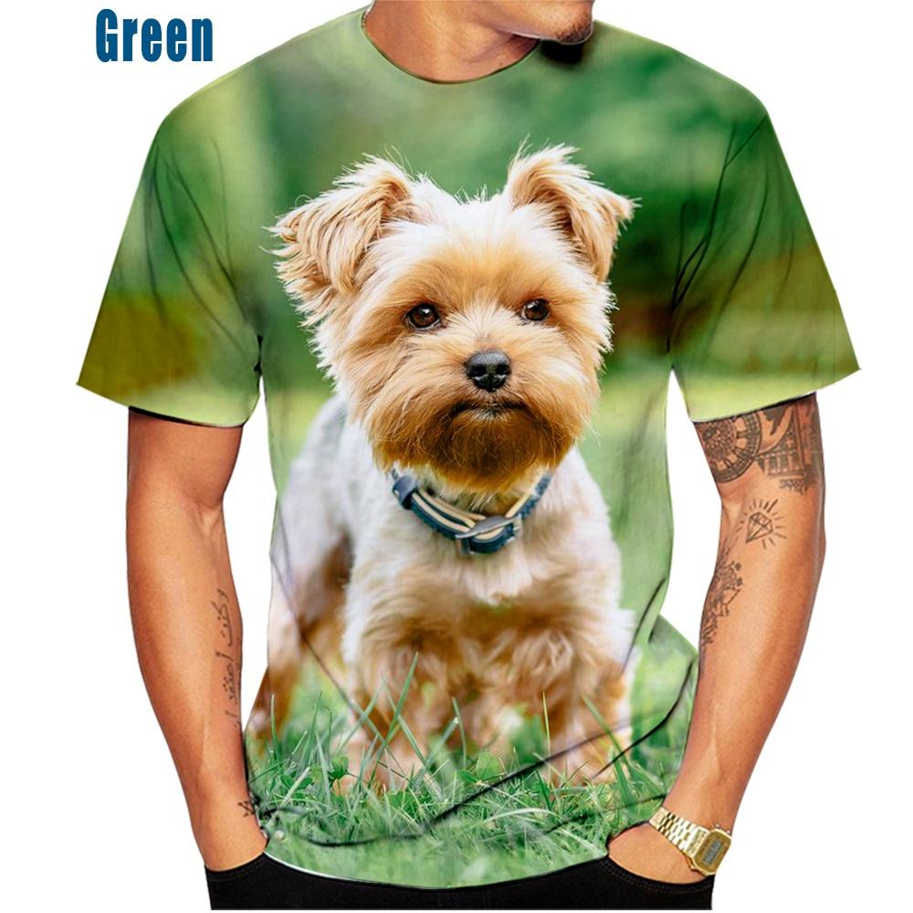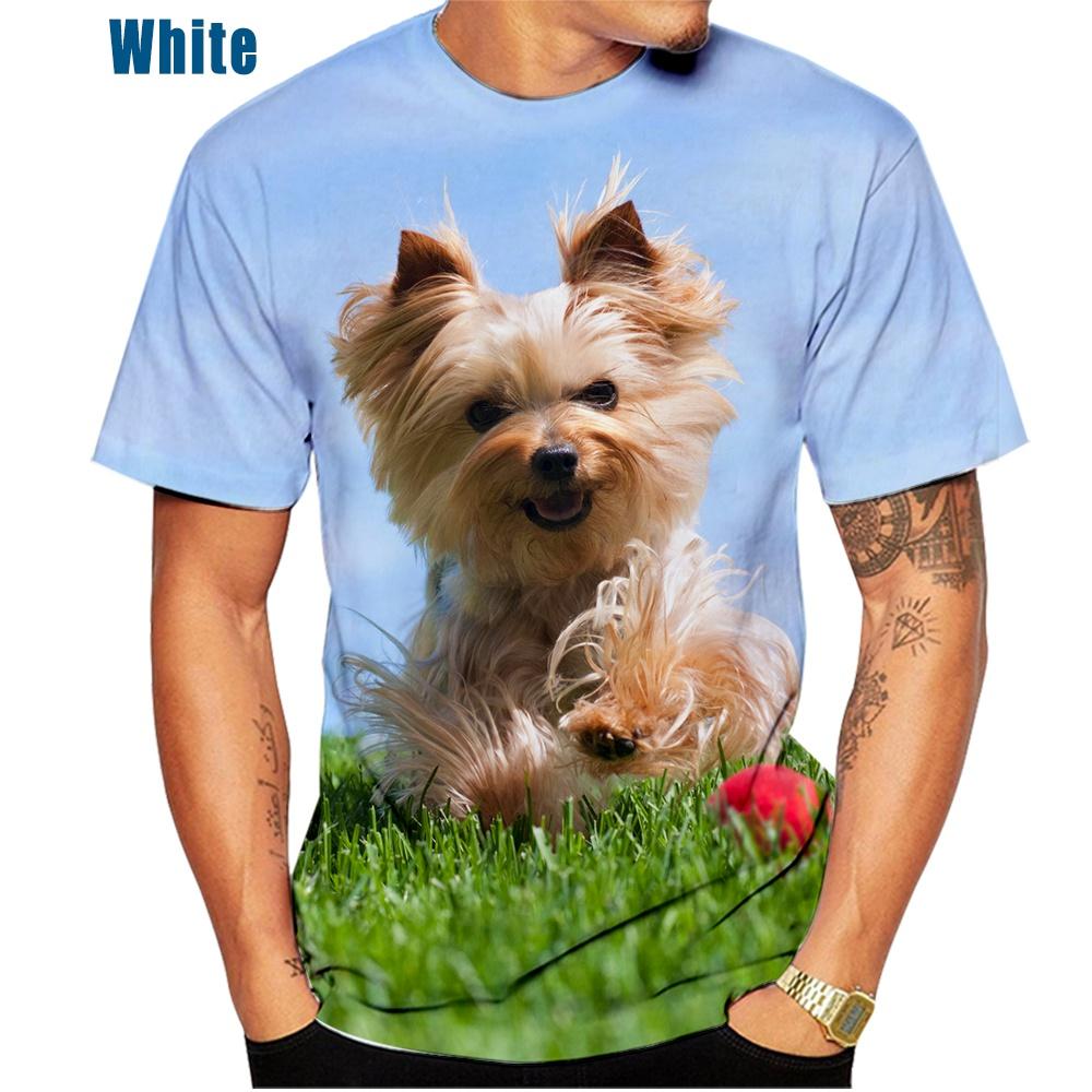 Трендовая мужская летняя модная повседневная футболка с милым домашним животным, собакой йоркширского терьера с 3D принтом, забавные топы с короткими рукавами и круглым вырезом