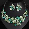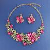 Свадебные украшения, цепочка для невесты, преувеличенные цветные цветы, полное ожерелье с кристаллами, серьги, ювелирные изделия