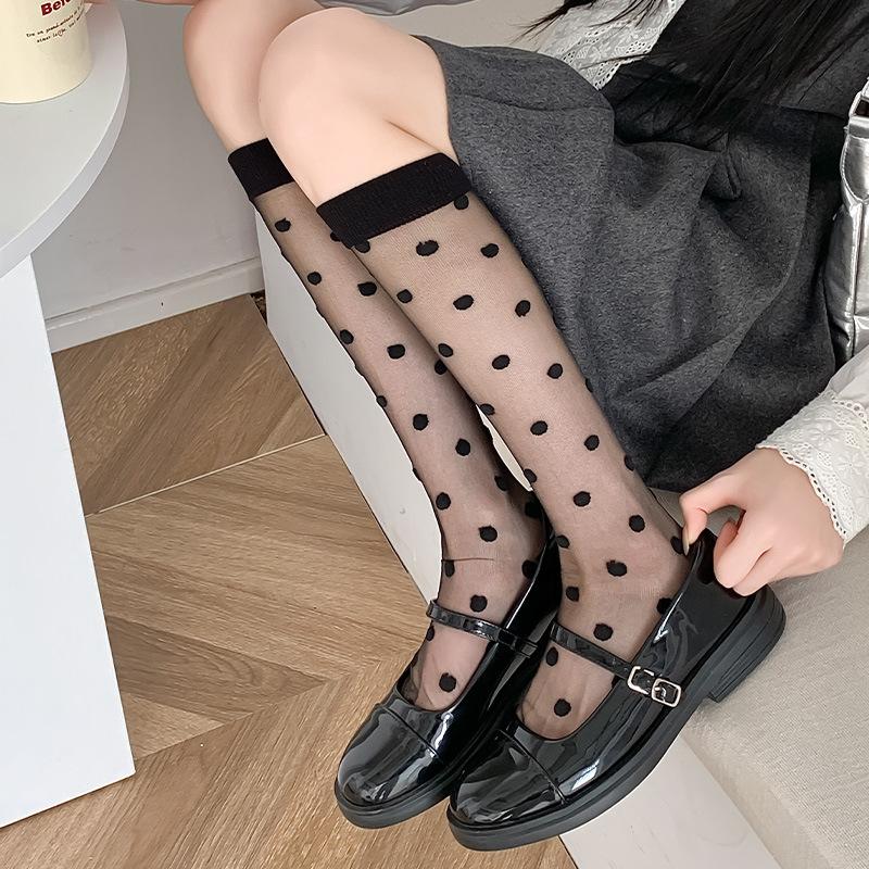 Шелковые носки с кристаллами, женские чулки, летние ультратонкие прозрачные гольфы в горошек JK для девочек, черные, белые длинные носки, чулки — купить товар онлайн с бесплатной доставкой до всему миру!