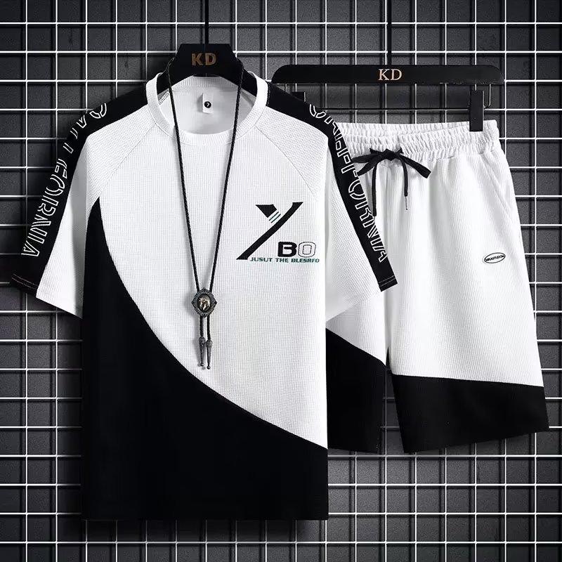 Летний мужской спортивный комплект из двух предметов, повседневная футболка и мужской спортивный костюм с цветными блоками, модный спортивный костюм с коротким рукавом — купить товар онлайн с бесплатной доставкой по всему миру!