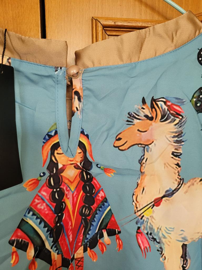 На российский размер 44 село свободно. Красивый принт, пошив хороший строчки аккуратные.
