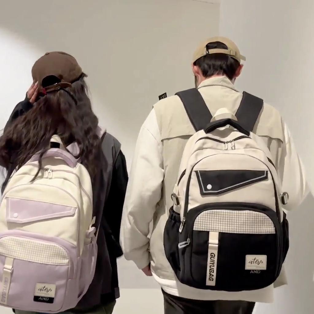 Цветной блок школьный рюкзак для школьников большой емкости рюкзак для пар женский рюкзак мужской дорожный рюкзак