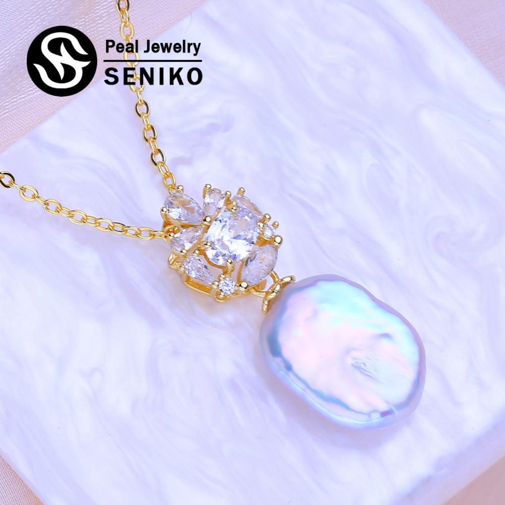 SENIKO натуральный пресноводный большой жемчуг в стиле барокко ожерелья для женщин модный кулон с кубическим цирконием с цепочкой подарок на день рождения — купить товар онлайн с бесплатной доставкой по всему миру!