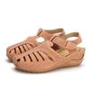 Женские летние винтажные сандалии на танкетке с пряжкой, повседневная женская обувь с шитьем, женские сандалии на платформе в стиле ретро, большие размеры