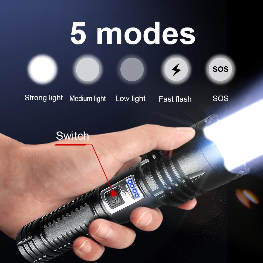 Шестерни: 5 передач, сильный свет-средний свет-слабый свет-стробоскоп-SOS, нажмите и удерживайте любую передачу, чтобы выключить