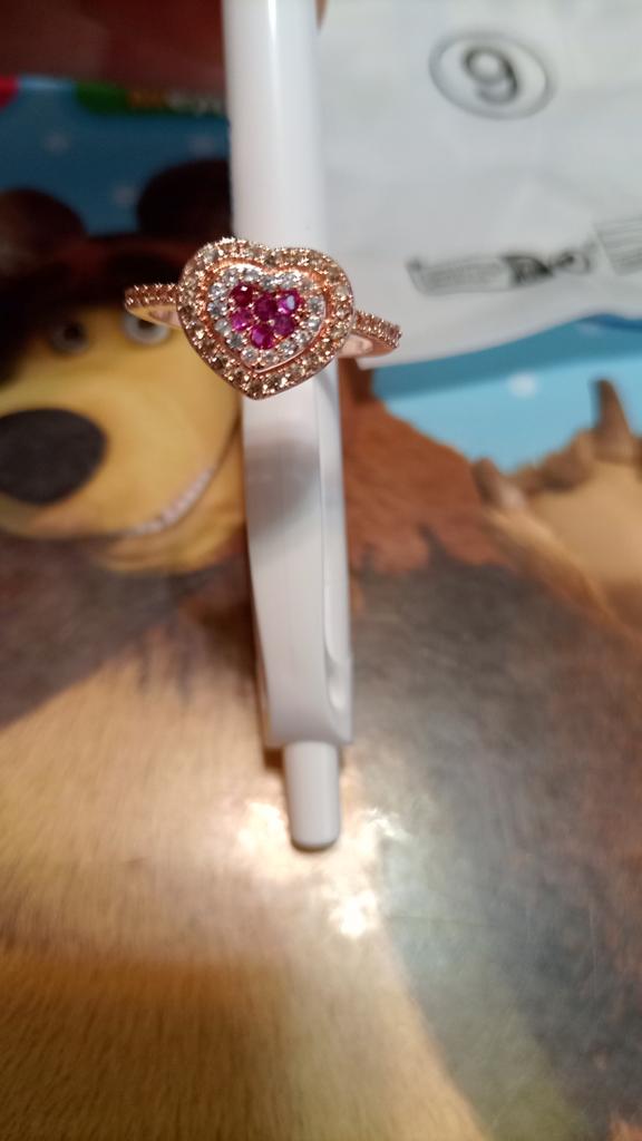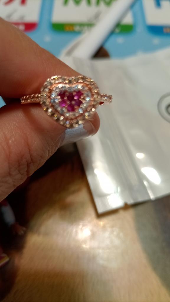 Получила колечко в виде сердечка, камешки розового и белого цвета, переливается, размер подошёл, всё отлично, спасибо продавцу и джум за быструю доставку