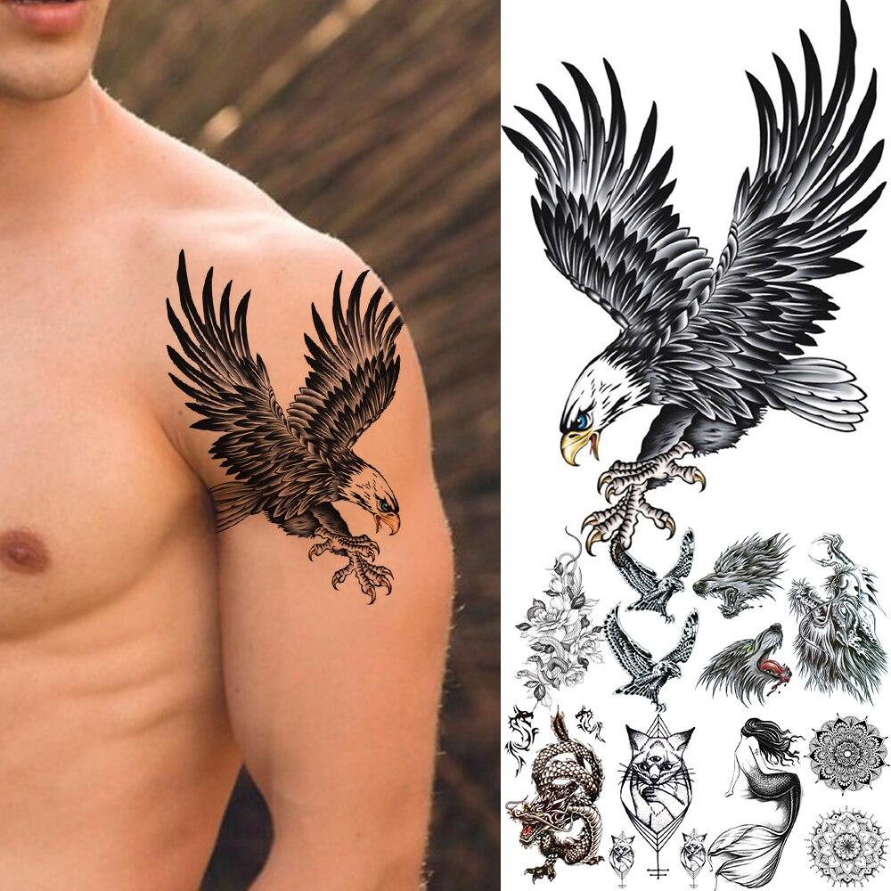 3D поддельные белоголовый орлан, реалистичные временные татуировки для мужчин, мальчиков, детей, старый волк, дракон, кошка, русалка, татуировки, наклейки, цветочные татуировки на руку