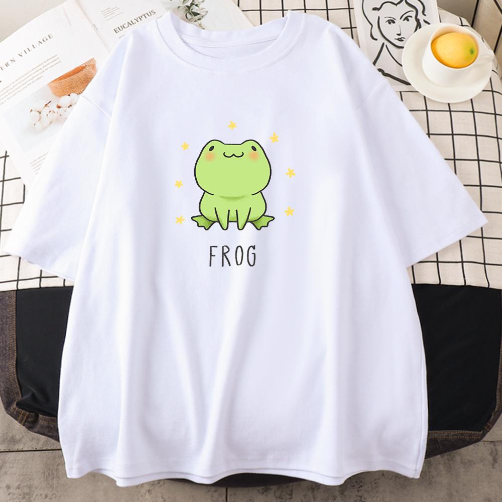 Kawaii футболка с принтом лягушки, женская летняя свободная футболка с короткими рукавами в стиле аниме, женская футболка в стиле Харадзюку с круглым вырезом, уличная одежда, футболки с аниме