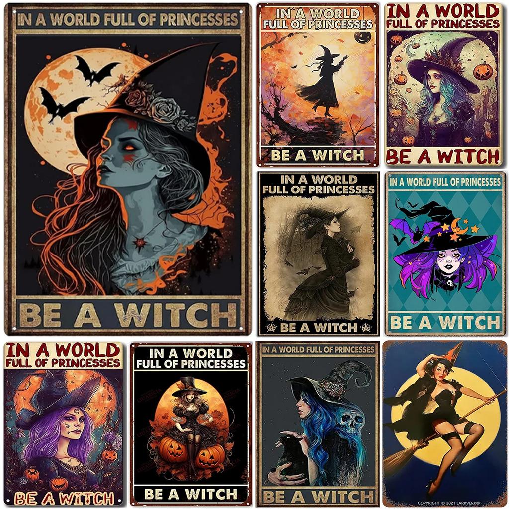 Металлические жестяные вывески «Будь ведьмой», настенная доска, винтажный художественный постер, железная картина для гаража, человека, пещеры, дома, кафе, сада, клуба, бара