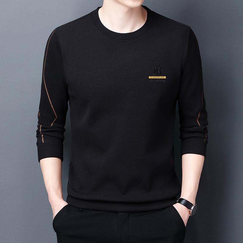 Двусторонняя бархатная толстовка мужская осенняя новинка для молодежи и мужчин среднего возраста с круглым вырезом и длинным рукавом, тонкая рубашка