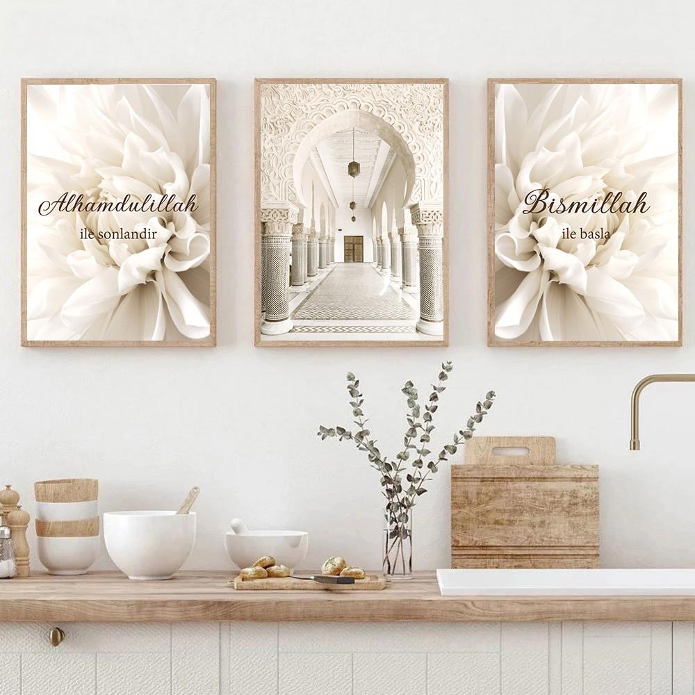 Альхамдулиллах бежевые цветочные постеры холст картины исламские принты Бисмиллах мусульманские настенные художественные картины гостиная домашний декор