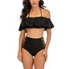 2024 Новый сексуальный женский купальник с открытыми плечами, однотонный купальник больших размеров, танкини с оборками, комплект бикини с высокой талией, купальный костюм Mujer 5XL