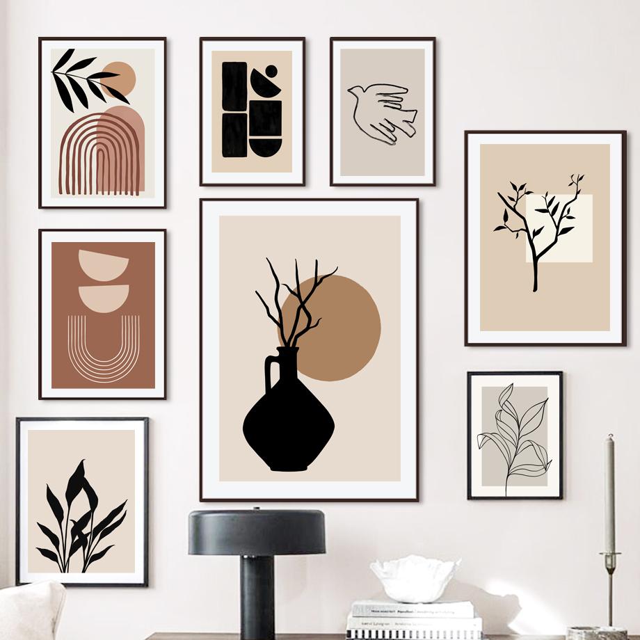 Абстрактные Бохо Радуга Ваза Растение Лист Линия Плакаты И Принты Холст Картина Скандинавские Настенные Картины Для Декора Гостиной