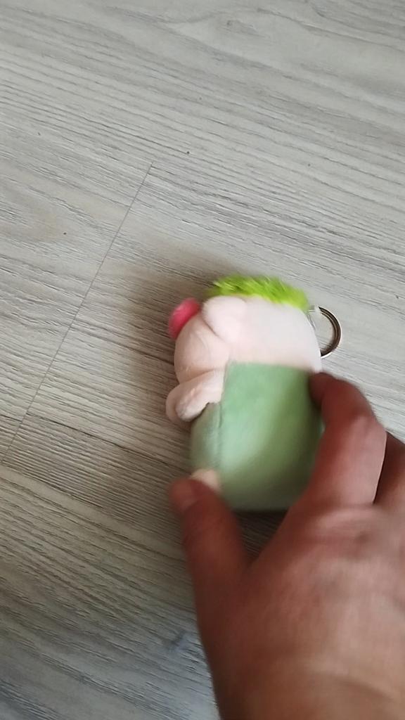 Свинтус в реале не очень похож на фото в описании товара. На щеке какая-то складка, руки короткие, отсутствует застёжка-крепление, только кольцо. Кое где торчат нитки. Хотя все равно смешной.