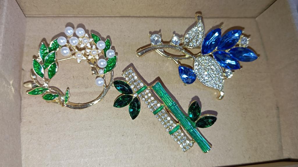 Все норм, доставка быстро, 4ка за один странный момент- игла застежки припаяна по неизвестной мне причине под углом- может так должно быть, но не удобно.... а так все блястит и переливаетца аки диаманты чистой воды, хоть и не совсем ровненько, видимо очень много заказов и торопились наделать брошечек побольше))))