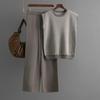 Осень-зима, свободный пуловер с высоким воротником, костюм-свитер, женский однотонный вязаный широкий брюки с короткими рукавами, комплект из двух предметов