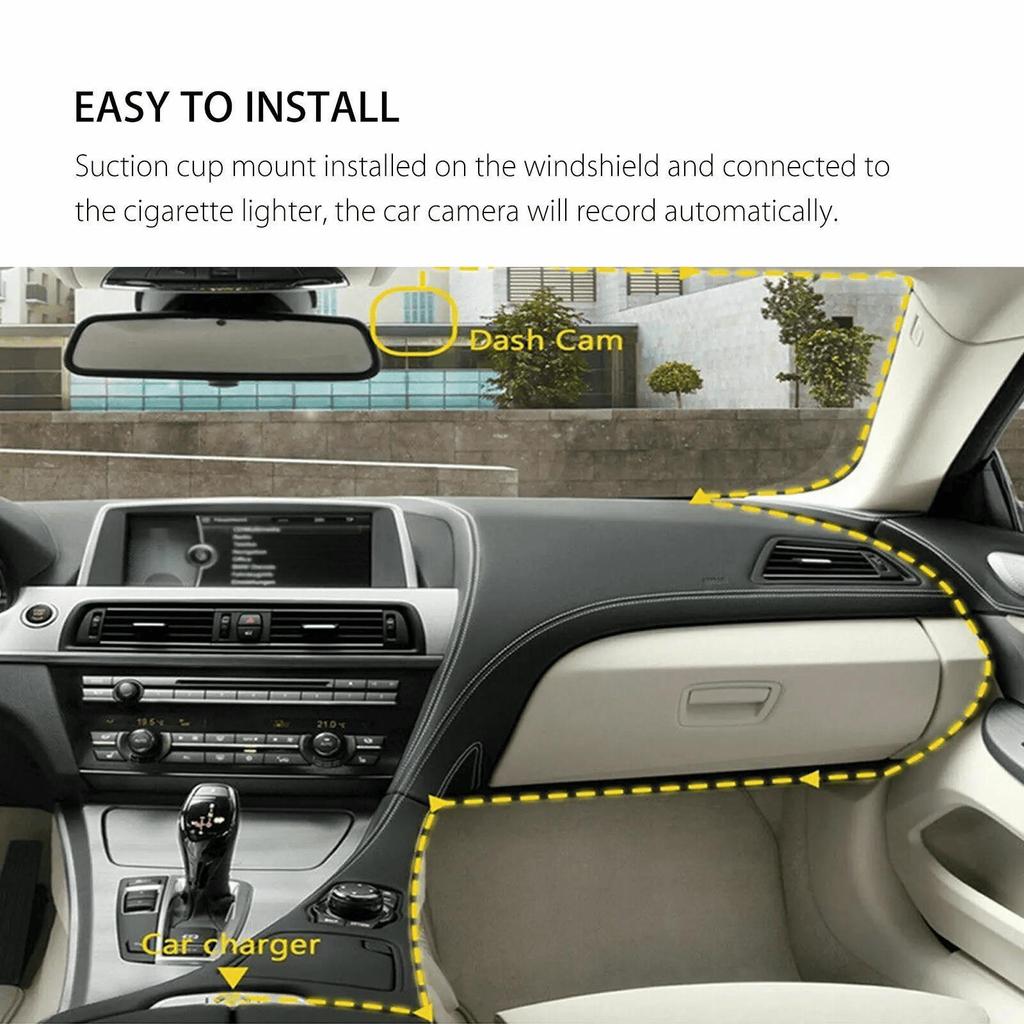 Легко установить: Крепление присоски установлено на лобовом стекле и подключено к прикуривателю, камера автомобиля будет записывать автоматически.
