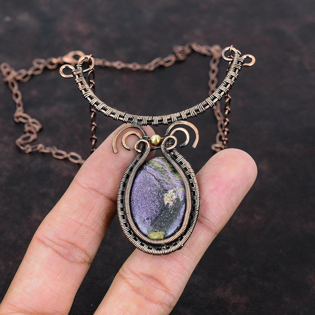 Пурпуритовое ожерелье, медная проволока, обернутая драгоценным камнем, ожерелье, изысканные ювелирные изделия ручной работы, регулируемое ожерелье, медная проволока, ювелирное изделие, подарок для женщин — купить товар онлайн с бесплатной доставкой по всему миру!