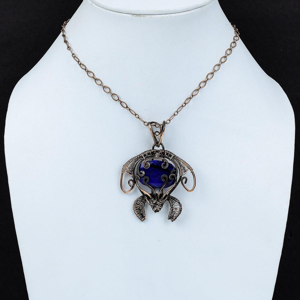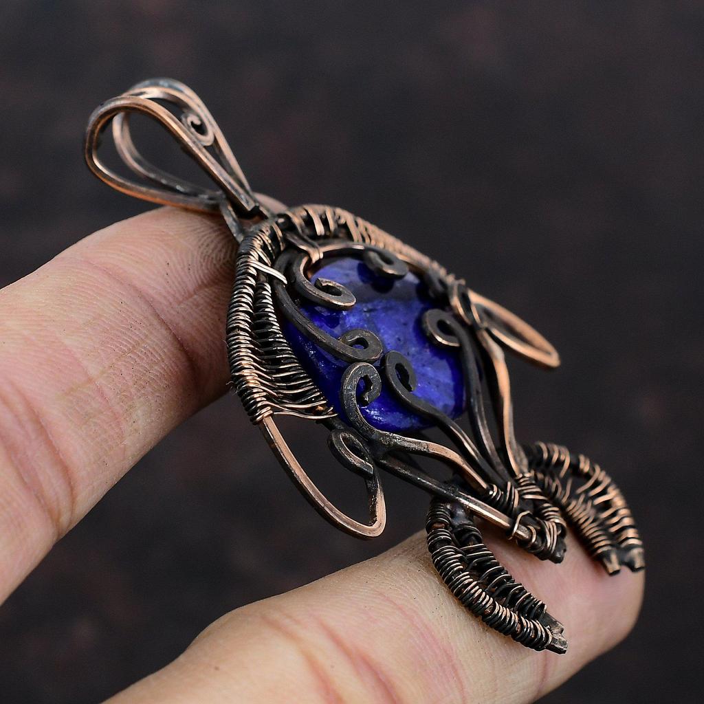 Подвеска с граненым синим сапфиром, подвеска из медной проволоки, ювелирное изделие ручной работы, подвеска из драгоценного камня, изумительная медная бижутерия, подвеска в виде черепахи для подарка