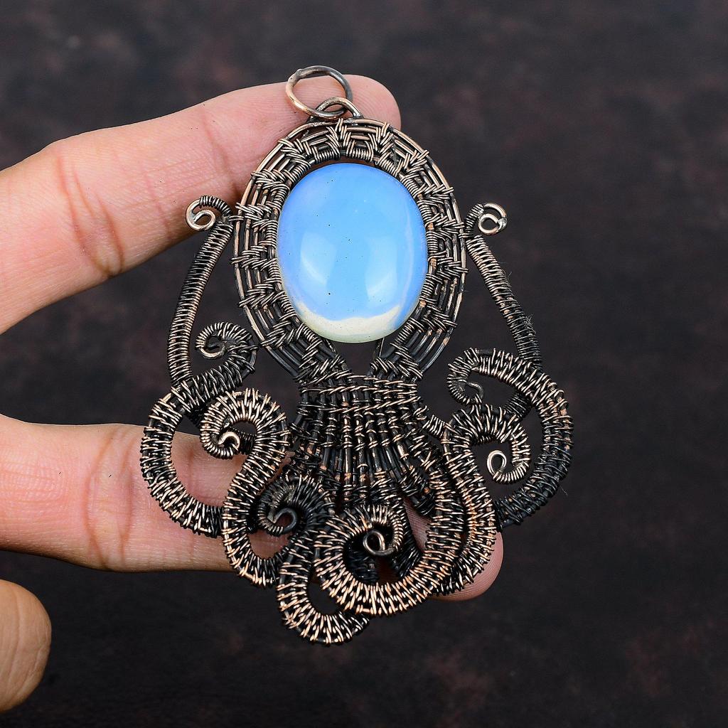 Подвеска из молочного опала, подвеска из медной проволоки, медное украшение ручной работы, потрясающая подвеска в виде осьминога, ювелирные изделия из настоящего драгоценного камня, специальный женский подарок