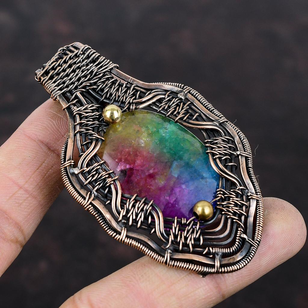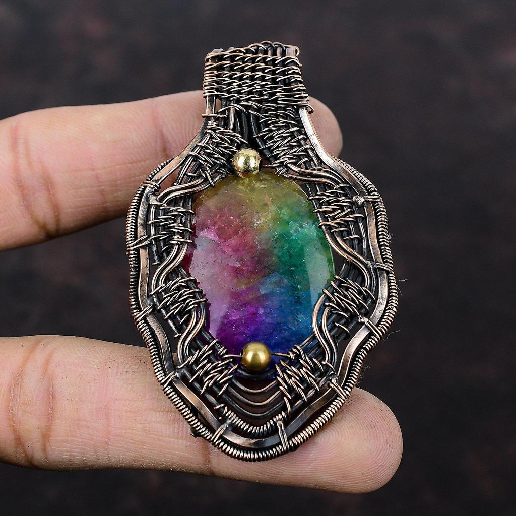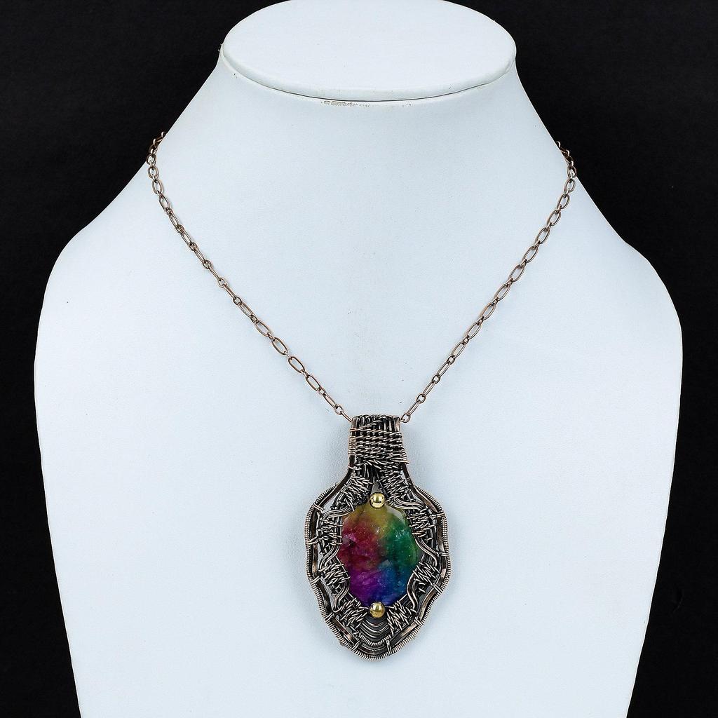 Rainbow Solar Quartz Druzy Pendant Copper Wire Wrapped Pendant Original Gemstone Pendant Handmade Boho Style Pendant Copper Jewelry For Gift