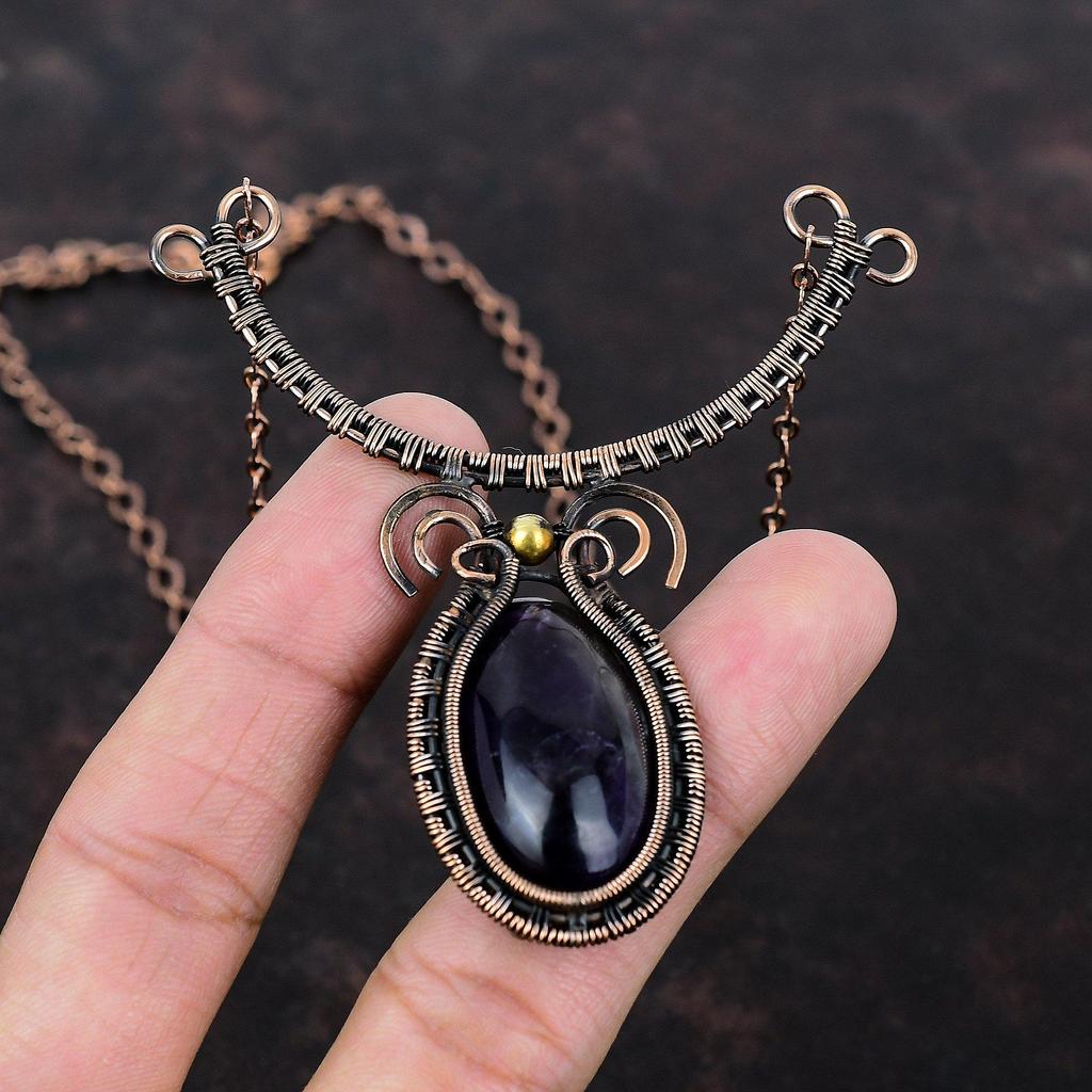 Ожерелье с шевроном и аметистом, обернутое медной проволокой, регулируемое ожерелье, ювелирные изделия из драгоценных камней, новое ожерелье ручной работы, ожерелье из медной проволоки