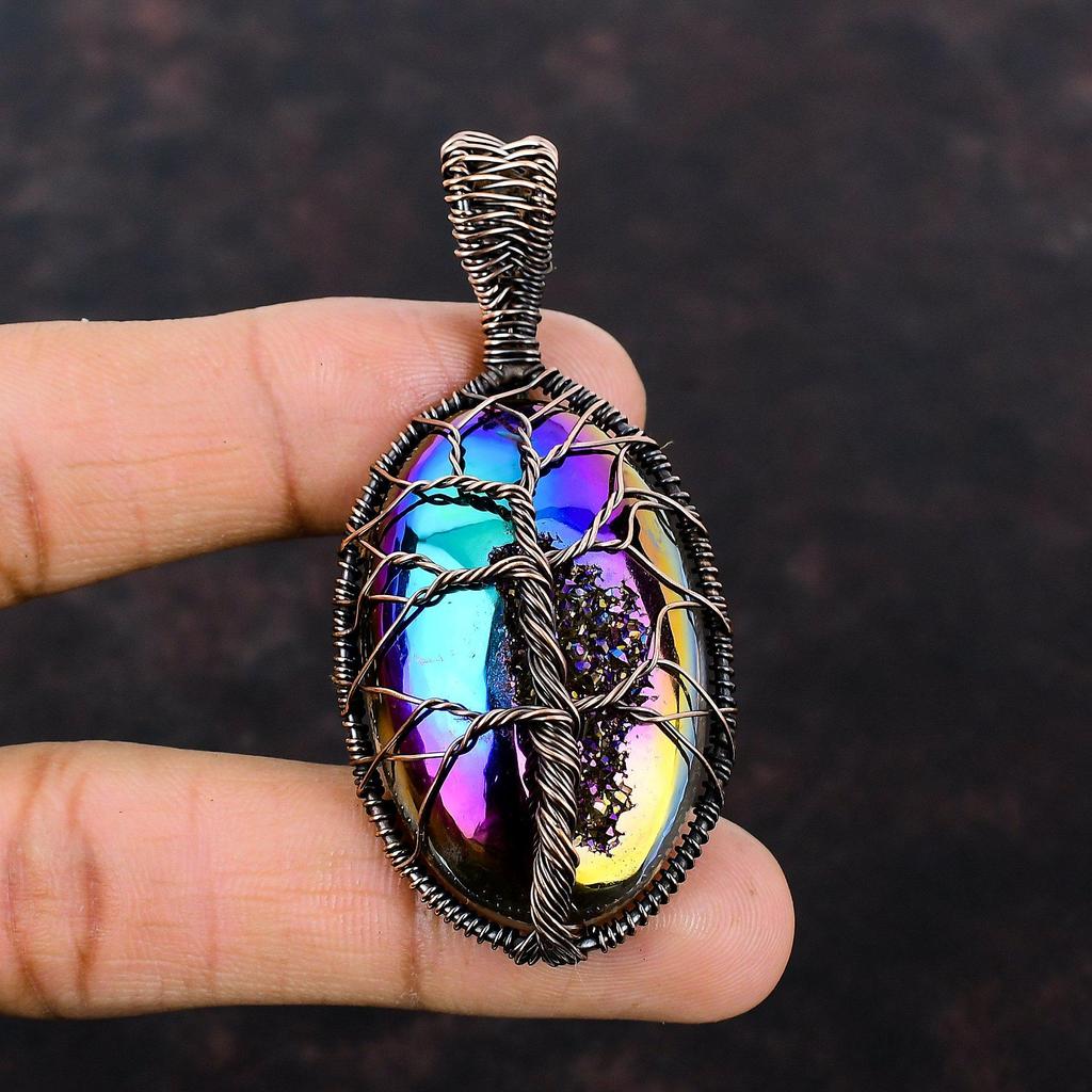 Древо Жизни Титан Друзы Подвеска Медная Проволока Обернутая Подвеска Ювелирные Изделия Из Драгоценных Камней Для Подарка Ювелирные Изделия Из Медной Проволоки Подвеска Ручной Работы Женская Подвеска
