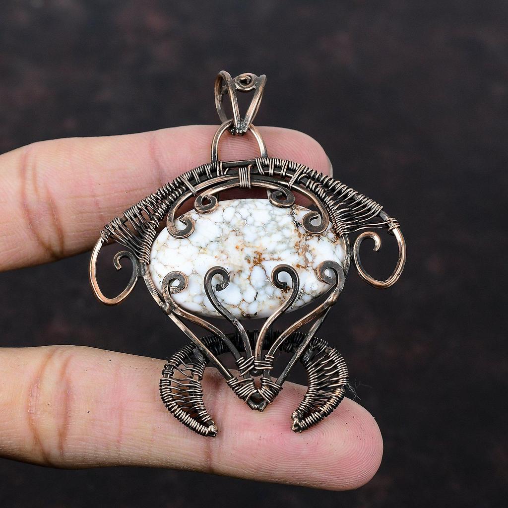Подвеска из магнезита с дикой лошадью, кулон в медной проволоке, медные украшения ручной работы, кулон из натурального драгоценного камня, ювелирные изделия, завернутые в проволоку, подарок для нее
