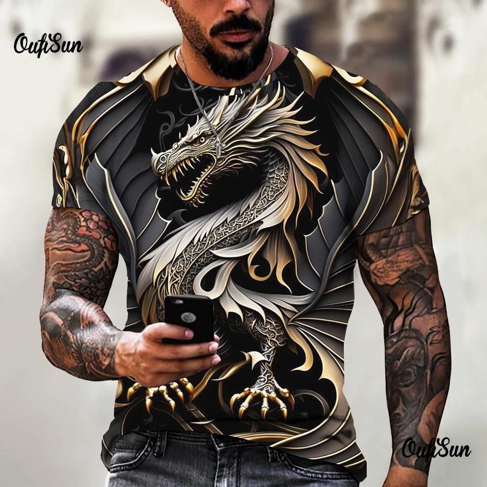 Мужская футболка с рисунком дракона, модная футболка с 3d принтом, уличная одежда большого размера с короткими рукавами, футболки с животными, летние повседневные мужские топы