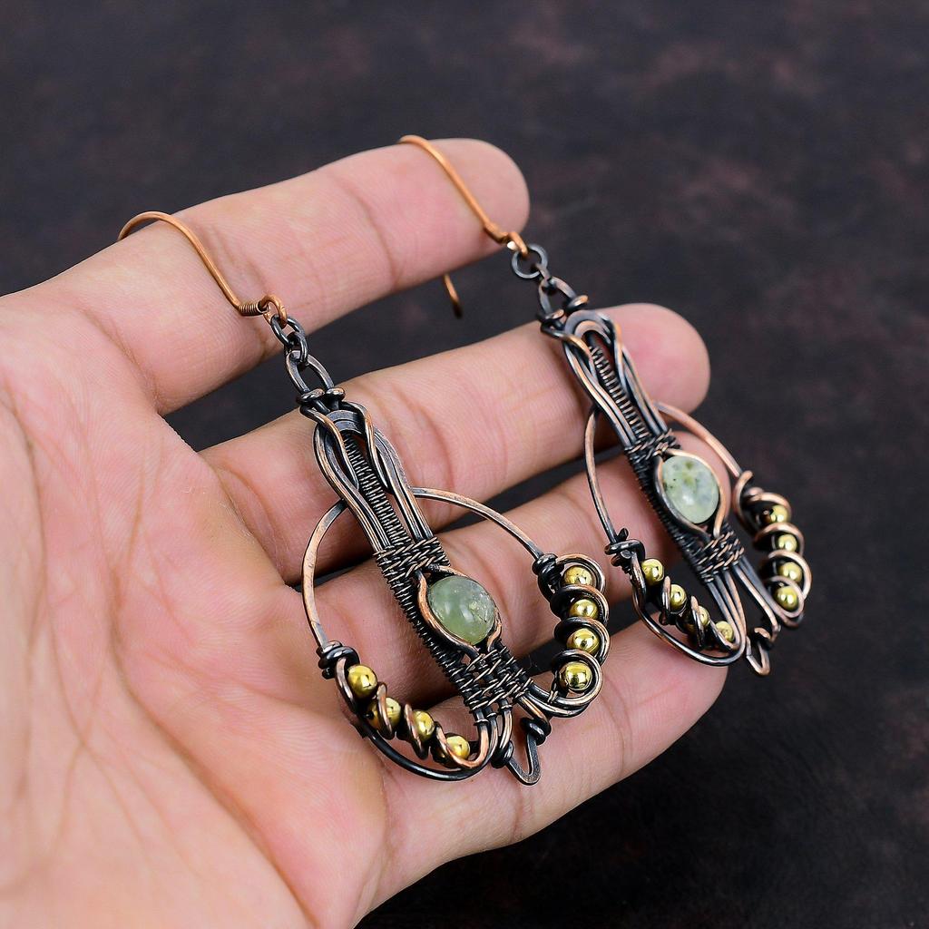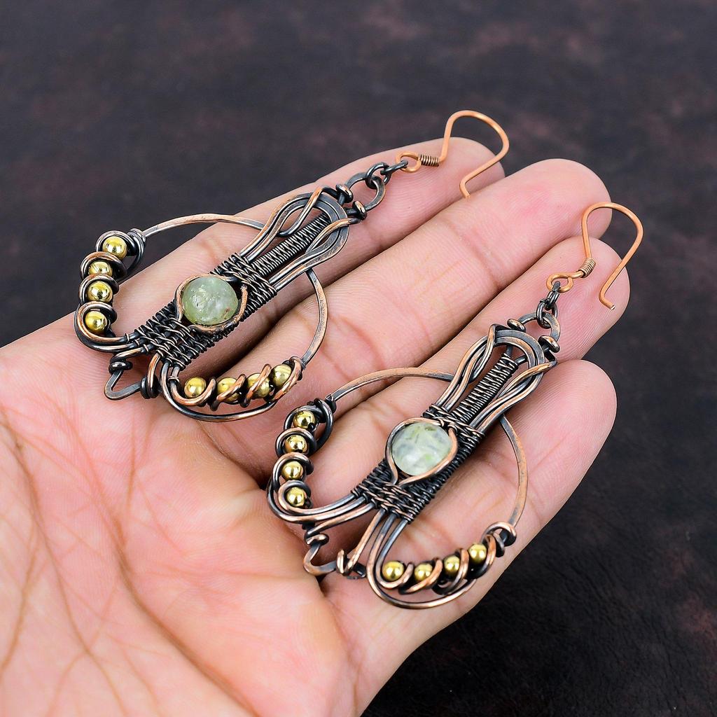 Серьги из мха-пренита, серьги из медной проволоки, медные украшения ручной работы, серьги с драгоценными камнями, стильные серьги, ювелирные изделия из проволочной обмотки, свадебный подарок