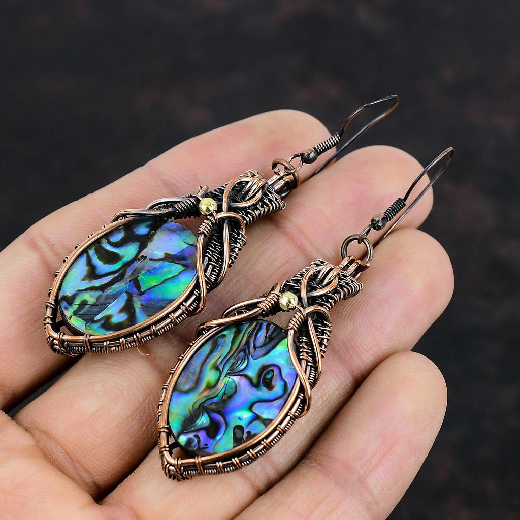 Медные серьги из ракушки ушка Медная проволока Ювелирные изделия Серьги с драгоценными камнями Ювелирные изделия из ракушек ушка Серьги ручной работы Серьги из проволочной обмотки для подарка