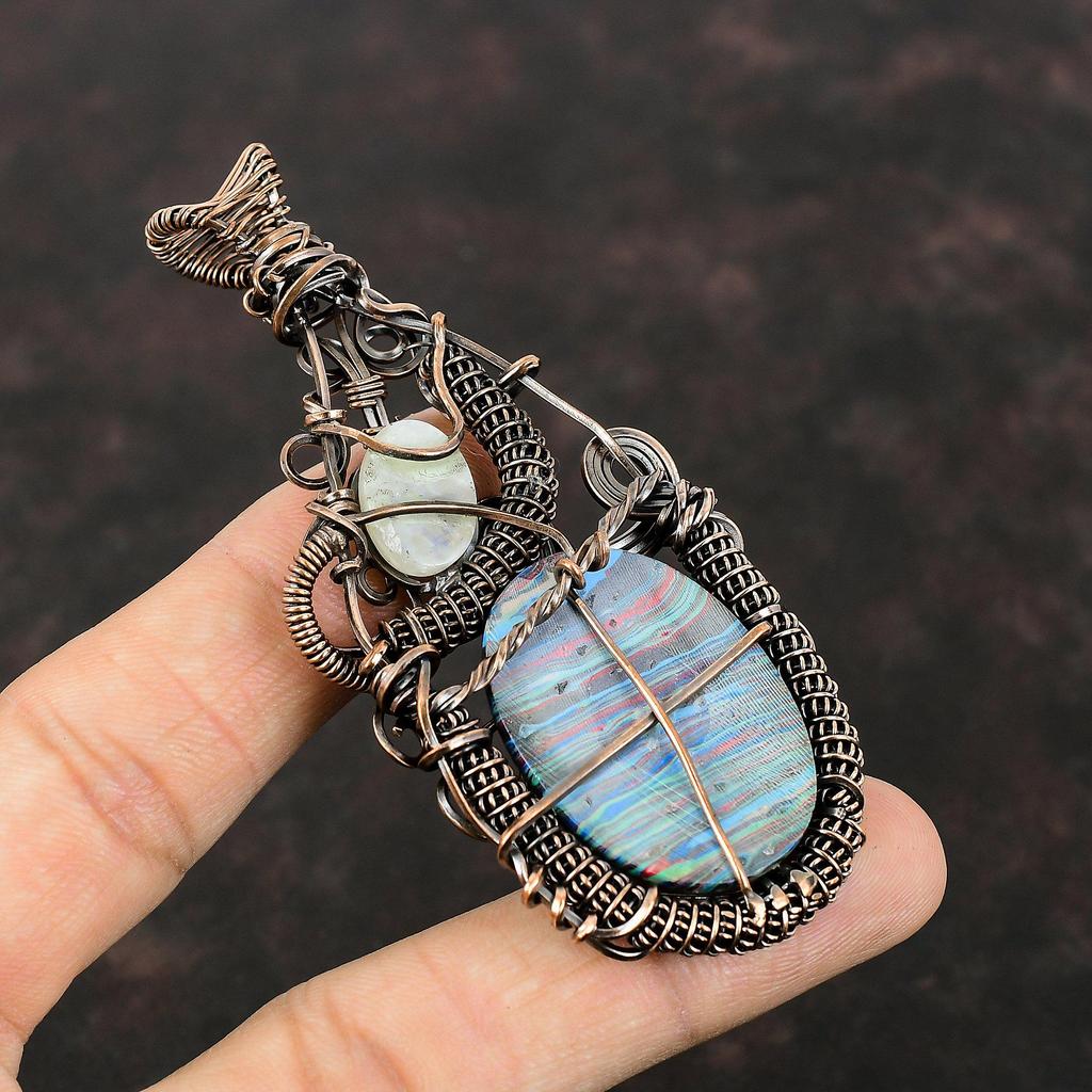 Подвеска Rainbow Calsilica, подвеска из медной проволоки, уникальная бижутерия ручной работы, подвеска из лунного камня, ювелирное изделие из медной проволоки, подарок на помолвку
